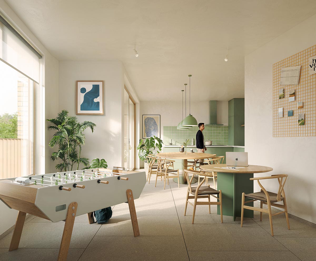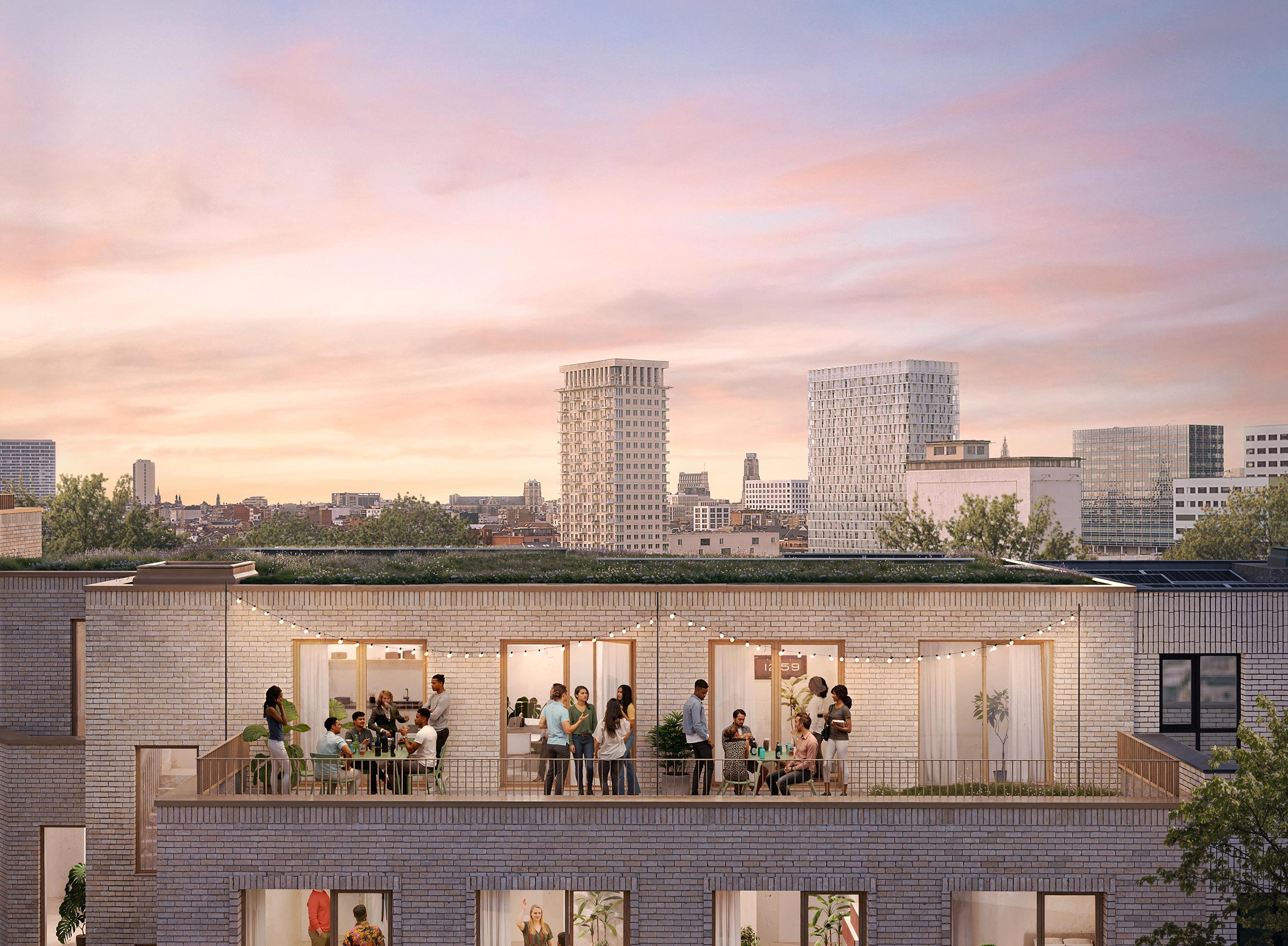 In het noorden van Antwerpen, vlakbij Park Spoor Noord en talloze hogeschool campussen, verrijst Aula met 43 studentenkamers en studio’s en één penthouse appartement, gehuld achter een tijdloze en moderne façade.
